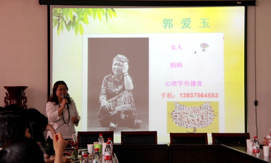 之后,千和公益心理沙龙嘉宾郭爱玉以《幸福从心开始》为主题,声情并茂地为大家分享了自己的经验。她从自我的概念出发,深入剖析了什么是自我,如何正确认识自我及看待幸福。她通过图片的对比引导在场女教职工认识到良好心态对幸福感的重要性。此外,她还开展了心理学相关的小游戏,让女教职工们在游戏中放松了心情、收获了欢乐。