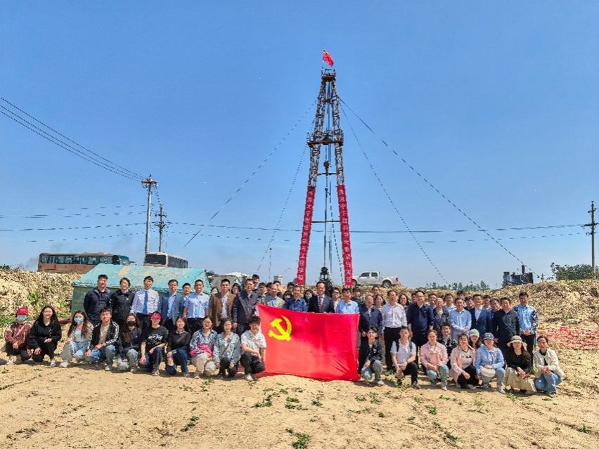 开钻仪式上,各支部党员认真聆听项目负责人关于开封凹陷千米深钻项目的背景介绍。该项目聚焦亚洲季风演化、黄河中下游贯通时间、中原文明演进等重大科学问题,旨在通过地质钻探获取高分辨率地质记录,为破解气候变迁规律、服务黄河流域生态保护和高质量发展提供关键科学支撑。