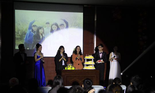 在节目互动环节,晚会以微信留言、猜歌名等不同形式让同学们融入晚会。其中,抽奖环节开展了以“相遇DIY,开启绿色之旅”的关键词互动,同学们热情高涨,留言达七千余条。紧接着,由绿盟往届会长及手工协会现任会长向绿盟这个大集体赠送蛋糕,传承了家文化,以示对绿盟的美好祝愿。最后手影舞《遇见》绚丽夺目,紫色的荧光十分优雅绚丽。