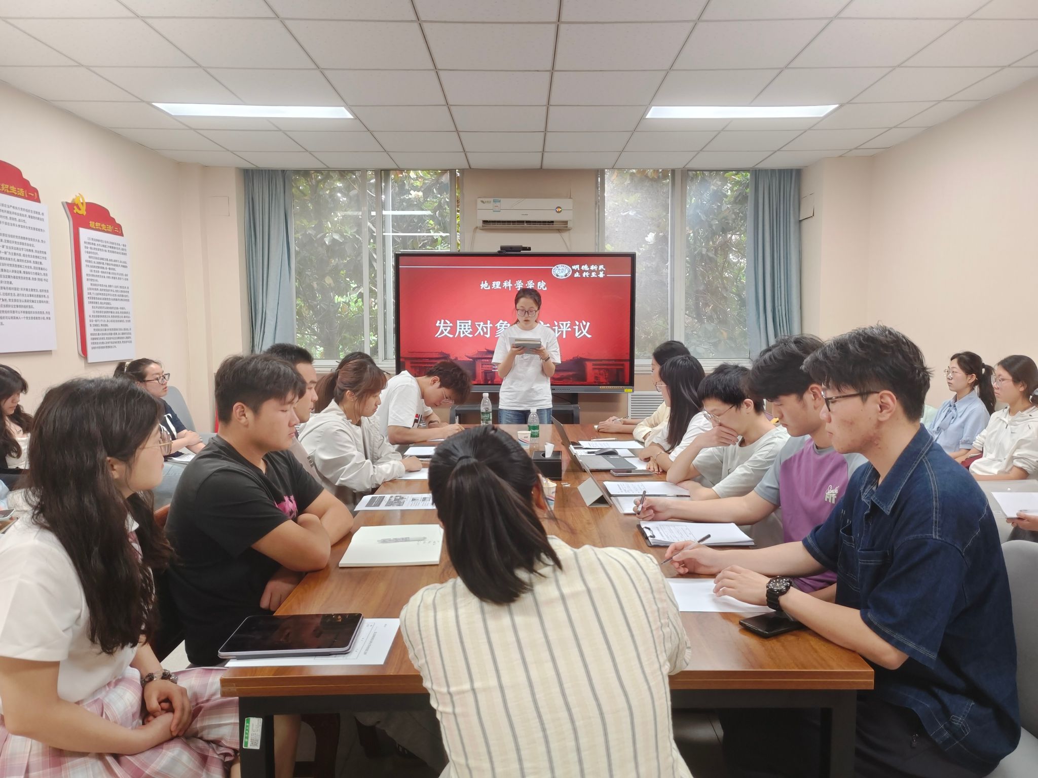 会议第二阶段为发展对象民主评议会。会上,李子璇等9名发展对象候选人依次围绕思想动态、学业表现、社会实践及生活作风等方面向党组织汇报个人的成长情况,分享自己成为积极分子以来的心得感悟,向党组织表明了自己入党的动机和决心。在民主评议环节,与会成员结合发展对象的日常表现、现场汇报等情况,从思想政治、道德品质、工作能力、群众基础等方面进行了充分讨论和无记名投票测评。