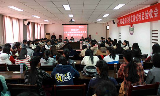 二楼报告厅举行。团委负责老师张鹏岩、宋根鑫、李靖宇及学生会成员与会。此次会议由学生会团委副书记万镕今主持。