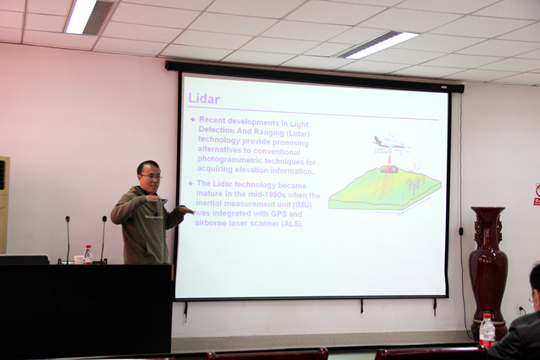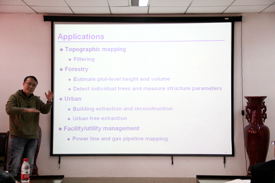 二楼报告厅做以激光雷达数据及地物信息提取为题的学术报告。