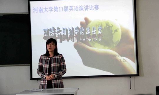 3月22日,由“河南大学英语文化节活动组委会”主办的“河南大学第十一届英语演讲比赛”院级选拔赛在我院520教室举行。此次活动由我院团委学生会学术部承办。