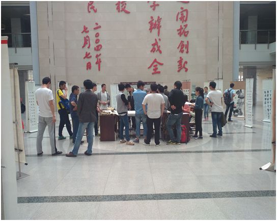 三校书法协会负责人齐聚活动现场,相互切磋书法技艺,共同交流书法心得。精心挑选的书法精品一经展出,迅速吸引了众多书法爱好者前来观看。书法协会的工作人员不仅耐心地给参观者介绍每幅作品的字体及历代书法名流等相关书法知识,还现场写字赠送慕名而来的书法爱好者,让大家在了解相关书法知识的同时,更能切身地感受到书法文化的无穷魅力。前来观看书法展的同学络绎不绝,现场气氛积极热烈。