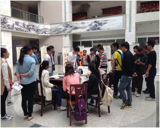团委,一直以来开展丰富多样的书法活动。此次活动是我校图书馆2015年读书月系列活动之一,为期两天。活动旨在通过书法展的形式,来丰富学生业余生活,提高学生审美素质,吸引同学们关注读书月活动,鼓励他们将有限的业余时间投入到培养兴趣爱好中来。