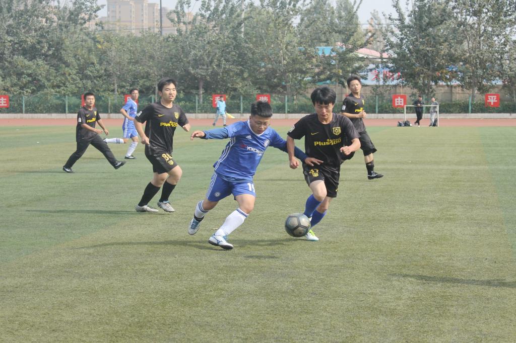随着裁判的一声哨响,吹响了上半场比赛进攻的号角。对手先展开了猛烈的进攻,但均被我方防守球员拦截抢断,双方在中场的对抗中,我院足球队技高一筹,渐渐将球权掌握在手中。通过几次强有力的长传冲吊、直塞进攻,对手的后防线逐渐被撕开,我院球员愈战愈勇。终于在比赛进行到30分钟时,我院前锋凭借速度优势,抢点接到左路队友的直塞球后在左路一路狂奔,在底线附近拔脚怒射,对方守门员毫无招架之力,眼睁睁看着球直入球门内,我院前锋完成了一次漂亮的小角度打门,比分1:0,我院暂时领先!随后双方教练均开始执行换人战术,场上气氛逐渐被调动起来,我院队员接连创造出精彩的传射配合,将球牢牢地控制在对方半场。对方球员也不甘示弱,利用一次角球将球传入我方禁区,在多次激烈地拼抢后,我方球员果断大脚解围化解险情。最终我院将1:0的优势保持到比赛结束,斩获首胜。