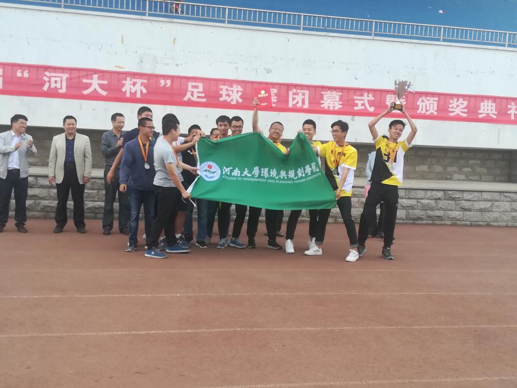 4月26日,“河大杯”闭幕式暨颁奖仪式在志义体育场举行,我院足球队经过一个多月的顽强拼搏,最终获得了甲级组亚军的好成绩。当主持人宣布我院足球队上台领奖时,台下掌声雷动,我院足球队员坚定的眼神中充满了欣喜与自豪,他们捧起的奖杯与胸前的奖牌是他们用汗水与激情浇灌出的硕果。