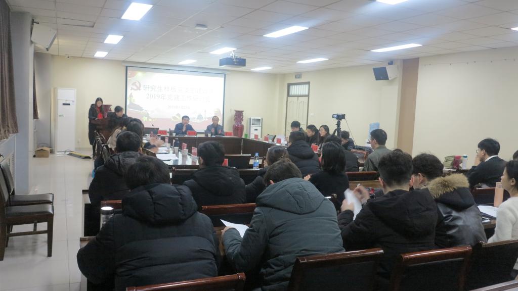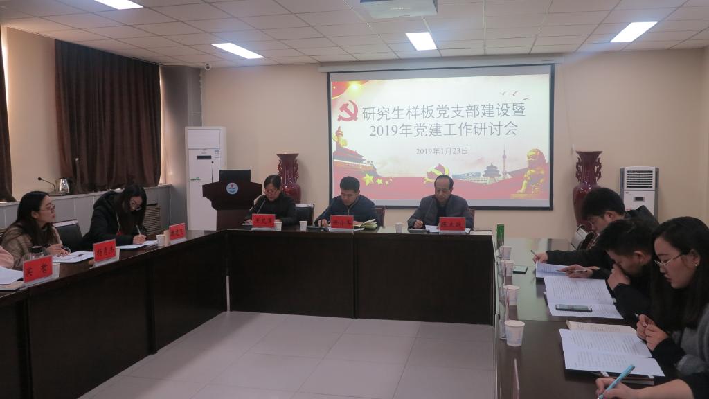 党委副书记徐小军、党委办公室主任王艾萍和研究生辅导员、博士研究生党支部书记陈太政,研究生各党支部委员、党员及研究生会代表。会议围绕三项议题进行: 2018年研究生党建暨思想政治教育工作报告、2019年研究生党建及思想政治教育工作思路和研究生样板党支部建设实施方案研讨。会议由徐小军副书记主持。