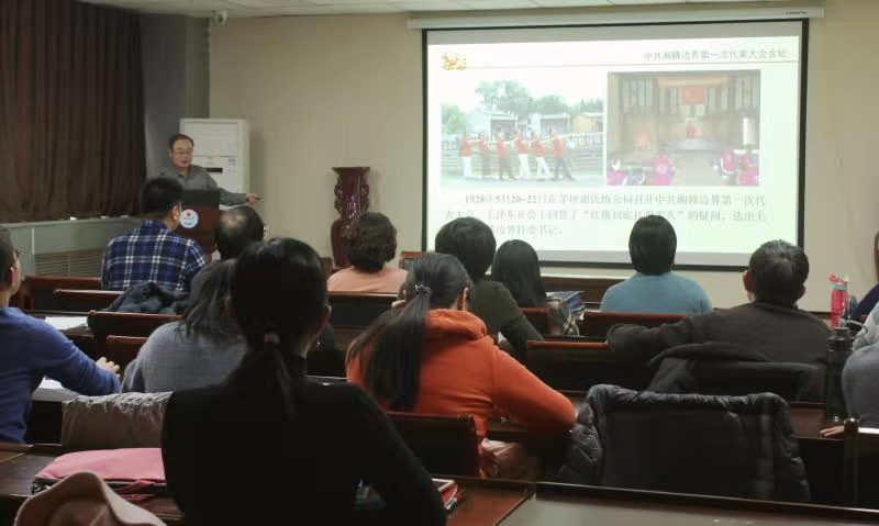 二楼学术报告厅召开“长征精神永放光芒——记河大地理人重走长征路”党课报告会,马建华教授担任此次会议报告人,第一党支部成员听取本次报告。