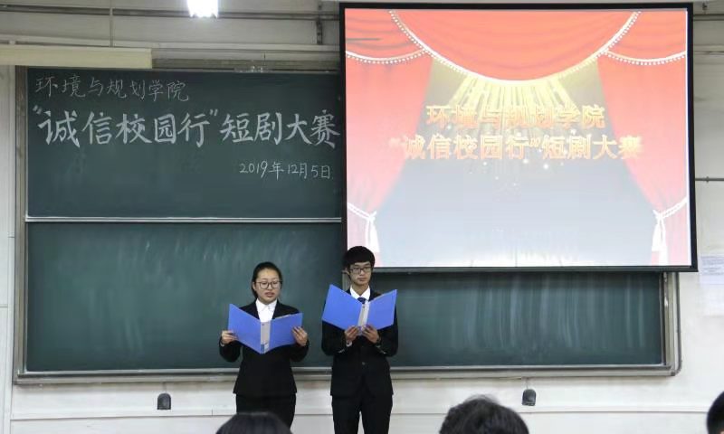 在金明综合楼4101举办了以“诚信筑未来,奋进新时代”为主题的“诚信校园行”短剧大赛。