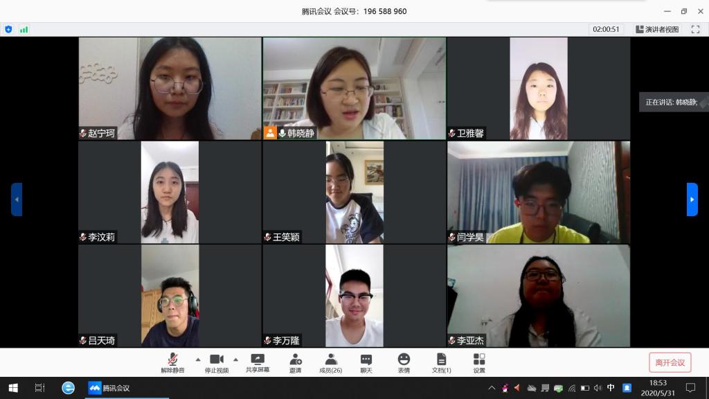 本科生第二党支部利用腾讯会议平台开展了以“学习两会精神”为主题的党日活动。会议由党支部书记韩晓静老师主持。