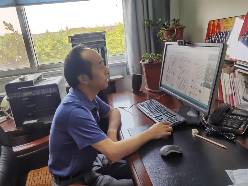 其他参会人员一起观看了其他入选培育单位党组织负责人的汇报发言。