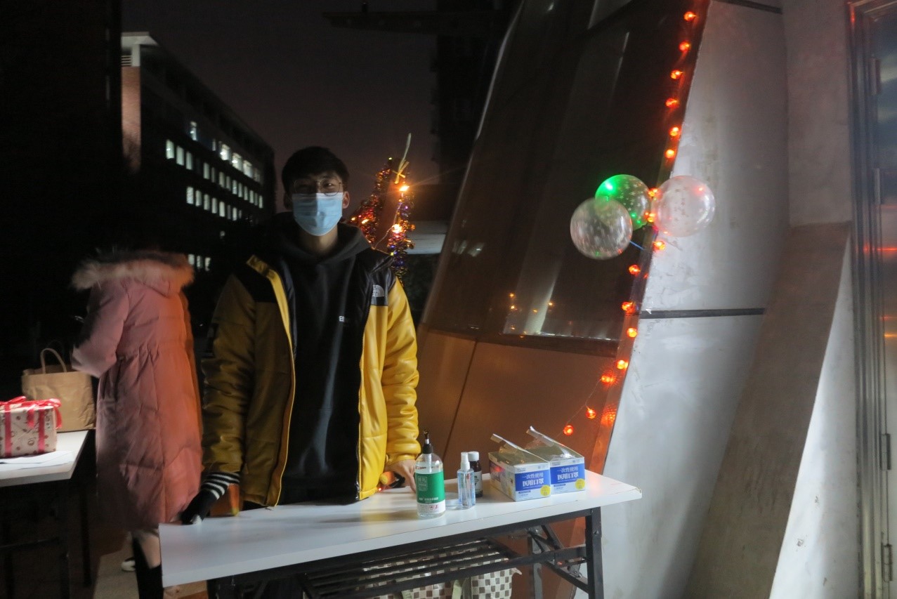 研究生第一党支部在元旦晚会筹备过程中,周密部署各项工作,始终绷紧疫情防控这根弦。前期根据风险评估储备足量防控相关物资和设备,科学制定疫情防控方案,提前排查和登记参加活动人员的健康等状况,告知参与人员安全防护要求,做好健康申报工作,确保人员信息可追溯。晚会过程中,要求持绿色健康码且体温正常的同学才可参加活动,进入晚会现场需佩戴口罩并用酒精消毒液消杀,严格履行防控职责,确保防控到位。