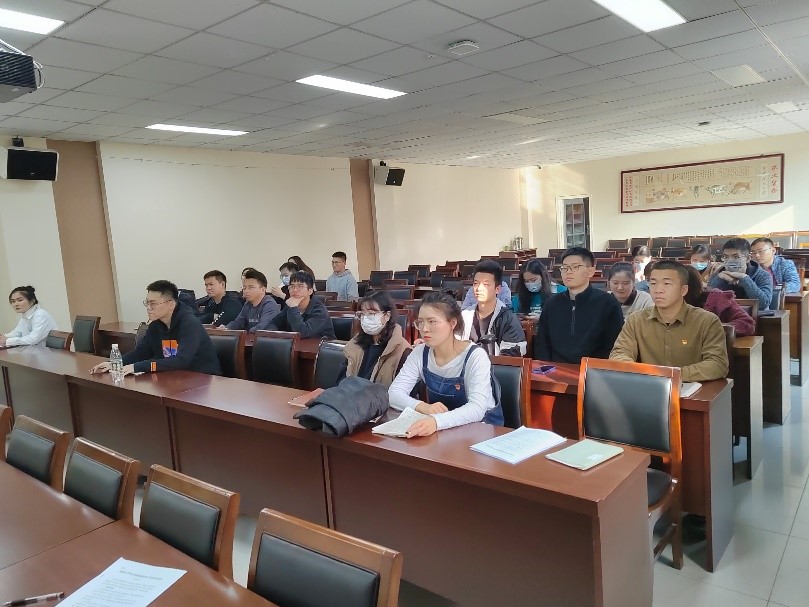 二楼报告厅召开换届选举大会,2020级研究生辅导员时振钦出席会议,会议由上届研究生第一党支部组织委员田卡吨同志主持。