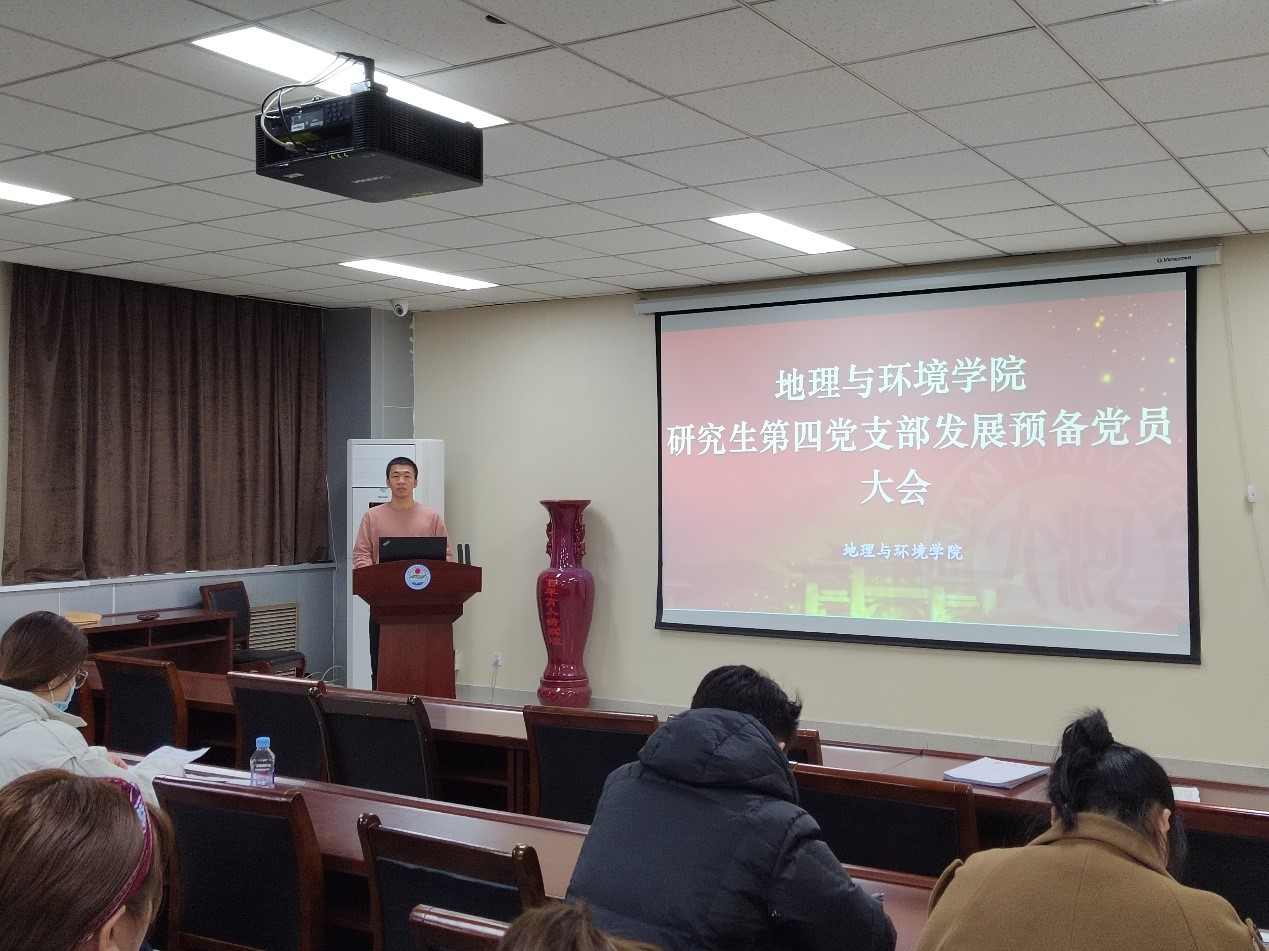 为进一步加强党员队伍建设,增强支部党员队伍凝聚力与战斗力,为党支部注入新鲜血液,12月10日晚7点,研究生第四党支部在院二楼报告厅开展接收预备党员大会。研究生第四党支部书记朱慧儒、组织委员陈鑫、宣传委员张盼盼及全体党员和发展对象参会,会议由支部书记朱慧儒同志主持。