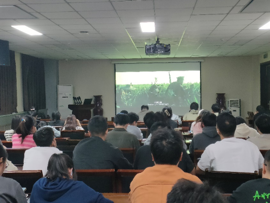 随后,全体同志集中观看了由张航同志所在小组挑选的爱国主义影片《八佰》。在场全体同志被革命先烈敢于战斗、无畏牺牲的革命精神和英雄气概所震撼,更加深刻地认识到信仰的力量,进一步增强了对在党领导下的我国能取得如今成就的自豪感。归期遥遥思绪万千的道义在肩,与黎明到来不会再痛的家国永安,现代与近代的碰撞,黎明与黑暗的交织,将“我们永远不会忘记这沉痛的一天”牢牢地刻在了在场每一个人心中。