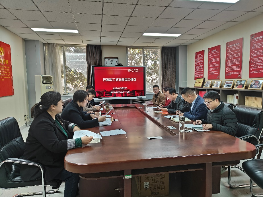 按照上级党组织《关于开展2023年度民主评议党员的通知》和工作部署,为深入学习贯彻习近平新时代中国特色社会主义思想,提升高质量党建引领高质量发展的支撑力,发挥党员教育管理和监督民主的作用,提高党性修养和思想政治素质,我院行政教工党支部于3月19日在党员活动室召开全体党员大会。5位班子领导以普通党员身份参加本支部评议。会议由支部书记谷蕾主持。