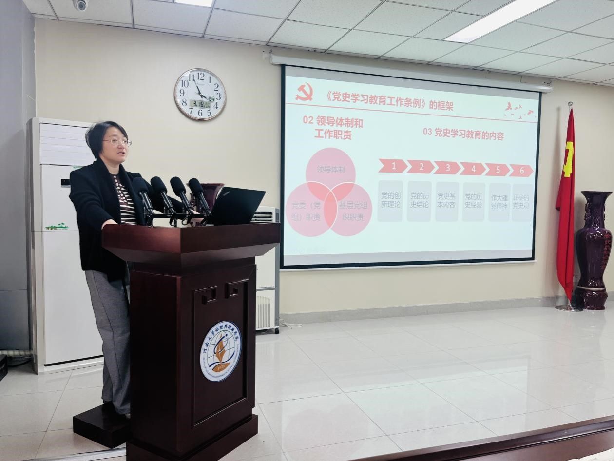 谷蕾首先全面介绍了《党史学习教育工作条例》的制定背景及其深远意义。她指出,自党的十八大以来,习近平总书记多次强调学习党史的重要性,并在党的二十大修改的《党章》中明确将学习党的历史列为党员义务之一。《条例》的制定,不仅是对习近平总书记关于党史学习教育工作重要指示的贯彻落实,更是对党和国家工作大局中党史学习教育工作的明确指导和规范。她强调,作为研究生党员,应深刻领会《条例》精神,将其作为党史学习教育的基本遵循。