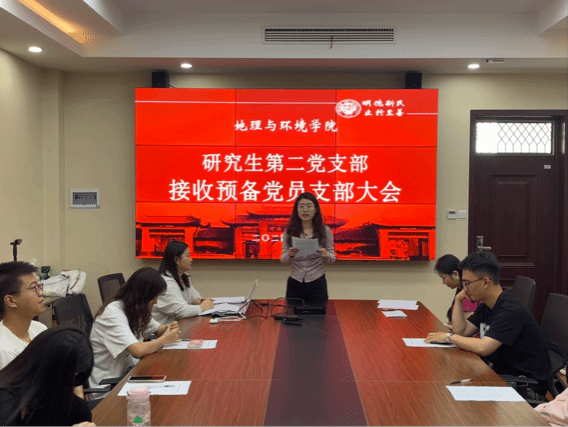 随后,研究生第二党支部召开接收预备党员支部大会。由陆蓉同志向全体党员及发展对象介绍了本次会议的基本流程,宣布本支部有表决权的正式党员共29人,应到会29人,实到会24人,有表决权的正式党员到会人数超过应到会有表决权人数的半数,会议生效。