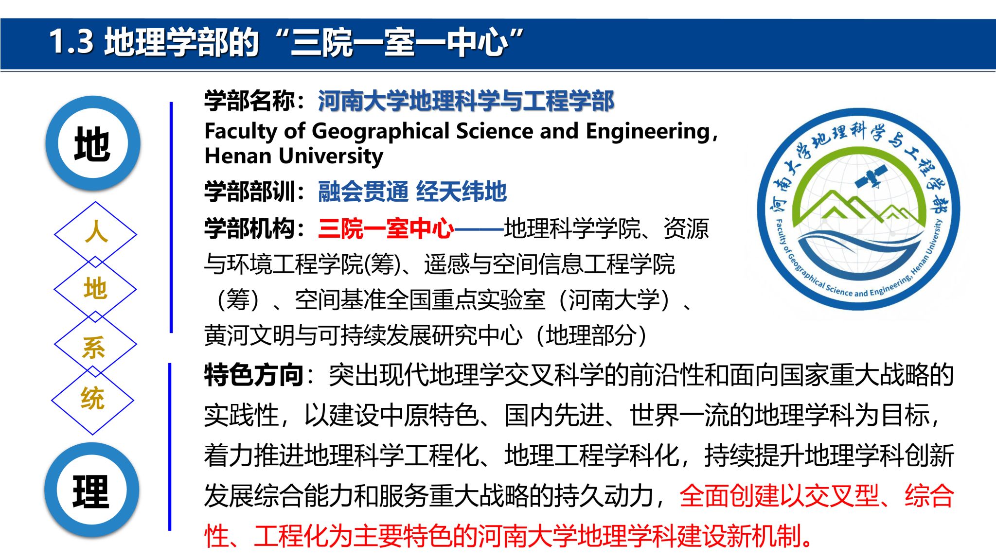 百年积淀,成就地理梦想;时代前沿,引领学科创新!河南大学地理科学与工程学部,承载着自1923年以来的深厚底蕴,始终与国家发展脉搏同频共振。我们以卓越的师资力量、前沿的学科布局和独特的培养模式,致力于培养未来地理科学领域的栋梁之材。接下来,请各位学子跟随我们一起走进河南大学地理科学与工程学部,深入了解这片孕育地理英才、探索地球奥秘的沃土吧!