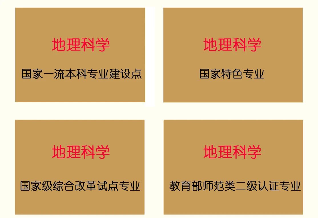 院士)冯景兰教授。学校设置地理科学专业于1950年,经过70余年发展,该专业已成为国内具有一定领先地位和影响的特色专业。2007年,该专业获批为地理科学国家特色专业。2010年,该专业获批地理科学国家级教学团队。2019年,该专业被教育部认定为首批国家一流本科专业建设点专业。2020年,该专业通过教育部首批师范专业二级认证。