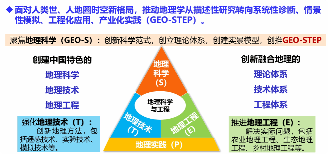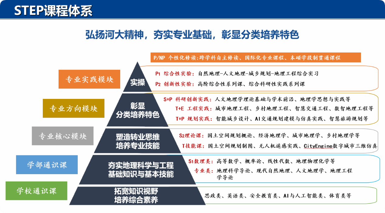 该专业构建“理论(Science)-技术(Technique)-工程(Engineer)-实践(Practice)”四位一体的STEP课程体系,培养学生对人地系统的科学认知与系统性诊断能力、智能化、情景化模拟能力、工程化应用能力以及产业化实践能力。