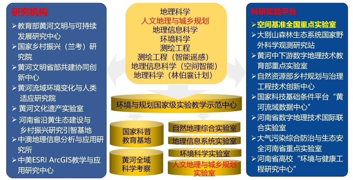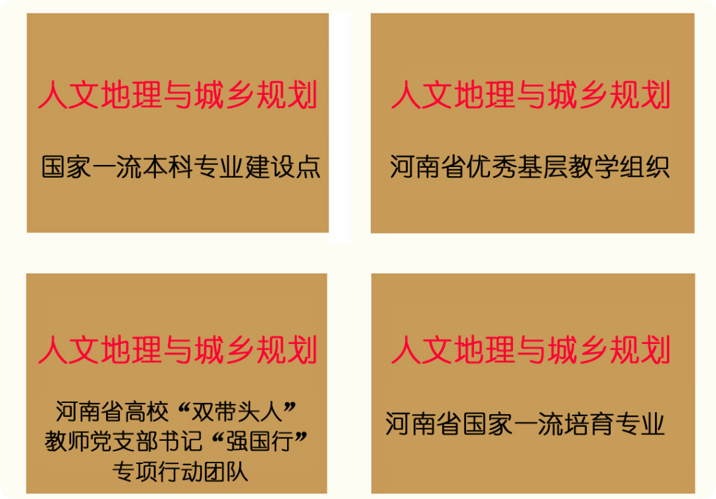 人文地理与城乡规划专业前身为1984年分设的国土开发与整治专业,历经发展演变成当今的人文地理与城乡规划专业。该专业1980年代被列为河南省重点建设专业,2000年获批人文地理学专业博士点,2003年支撑创建地理学博士后科研流动站,2005年以人文地理学专业为引领,获批地理学一级博士点,完成了从本-硕-博到博士后完整的人才培养体系。人文地理与城乡规划专业正式设立于2012年,2019年获批河南省一流本科专业建设点并入选河南省高等学校优秀基层教学组织,2021年获批国家一流本科专业建设点,地理学在教育部第四轮、第五轮学科评估中位列B+。