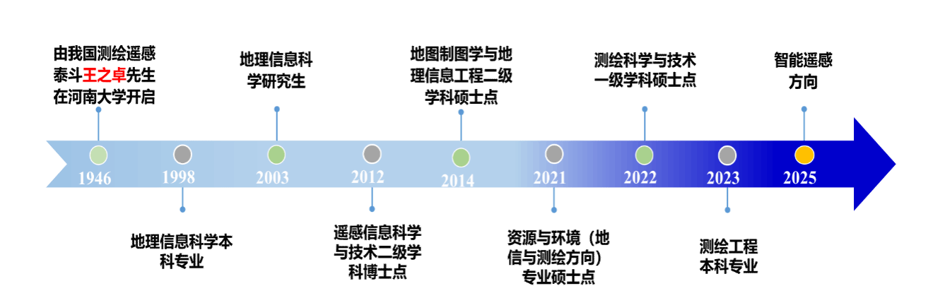 测绘工程(智能遥感)专业是一门专业性很强的综合学科。当前测绘行业发展日新月异,已从信息化测绘进入到智能化测绘时代;同时国家及河南省经济社会发展对测绘工程专业人才需求也持续增长。20世纪30年代,王之卓先生在河南大学创立了测绘学科基础,20世纪90年代以来,在王家耀院士的带领下,先后建设了地图学与地理信息系统、遥感信息科学与技术博士学位授权点及测绘科学与技术一级学科硕士学位授权点。当前测绘科学与技术、遥感科学与技术均为河南省重点学科。