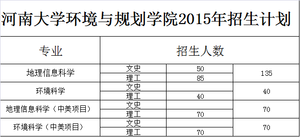 2015年该院按照专业类招生。地理科学类包括地理科学、自然地理与资源环境、人文地理与城乡规划和地理信息科学四个专业;环境科学与工程类包括环境科学专业。学生入学一年后,根据学生志愿和成绩考核按照类别分专业培养。
