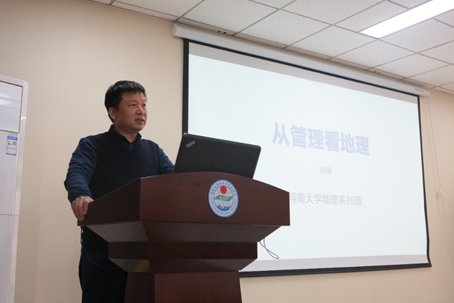 3月29日下午,河南大学上海校友会秘书长、同济大学经济与管理球探足球比分 副教授、河南大学地理系85级校友刘强应邀在球探足球比分 二楼报告厅作题为《从管理看地理》的报告。我院百余名师生共同聆听了此次学术报告,报告由秦奋教授主持。