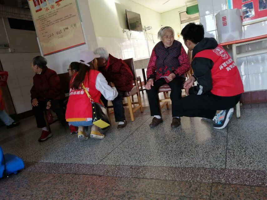 上午八点,志愿者们乘坐公交车前往家源养老服务中心。到达目的地后,志愿者们热情满满的开始志愿服务,有的来到老人房间陪他们唠家常;有的扶老人到户外晒太阳;有的帮老人打扫卫生。一时间,整个养老服务中心充满了欢声笑语。在和老人的聊天中,志愿者们了解到老人们的晚年生活并不寂寞,子孙们会时常带来各种礼品孝敬他们,许多学生志愿团队也来探望他们,社会各界更是对老年人关心有加。老人们还向志愿者们展示了他们逢年过节、娱乐运动的照片,展现安康的生活……