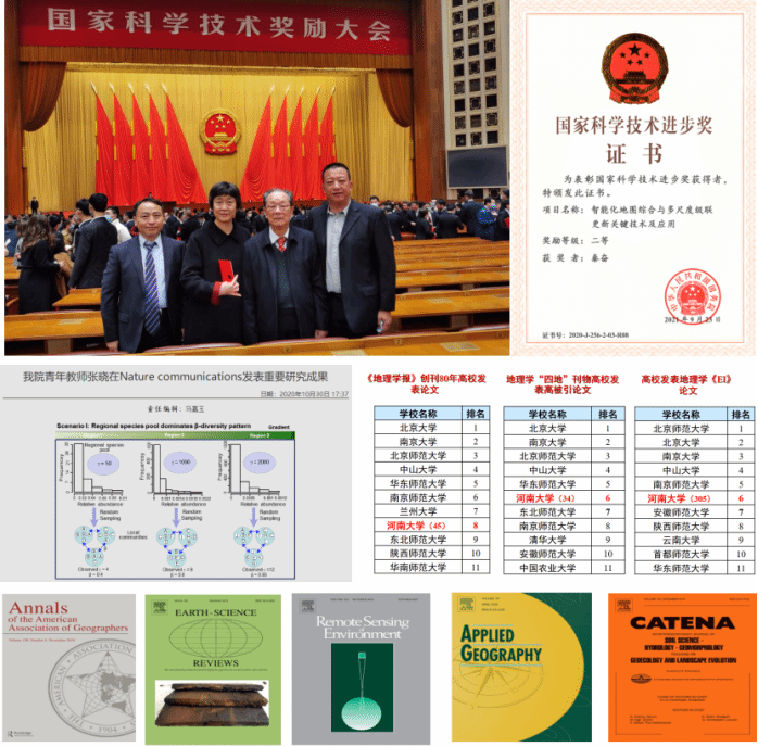 学近5年承担国家重点研发计划、国家自然科学基金、国家社会科学基金等科研项目60余项;获省级以上科研奖励5项,其中“由王家耀院士牵头的“智能化地图综合与多尺度级联更新关键技术及应用”项目荣获国家科学技术进步奖二等奖,“地球系统科学数据共享关键技术研究与应用”获河南省科技进步一等奖;发表SCI、SSCI等论文900余篇。