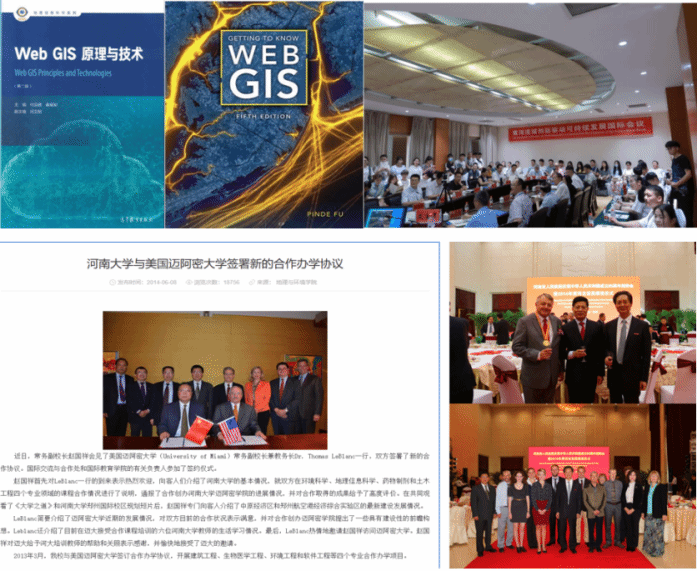 、美国环境系统研究所(ESRI)、德克萨斯州立大学(UTD)、迈阿密大学(UM)等20多家学术机构和高等院校,开展联合培养与合作研究,建立了河南省数字地理技术国际联合实验室、河南省沿黄生态保护与乡村振兴引智平台,受聘的海外教授Ronald Briggs、Milan Konecny先后获得河南省人民政府“黄河友谊奖”。