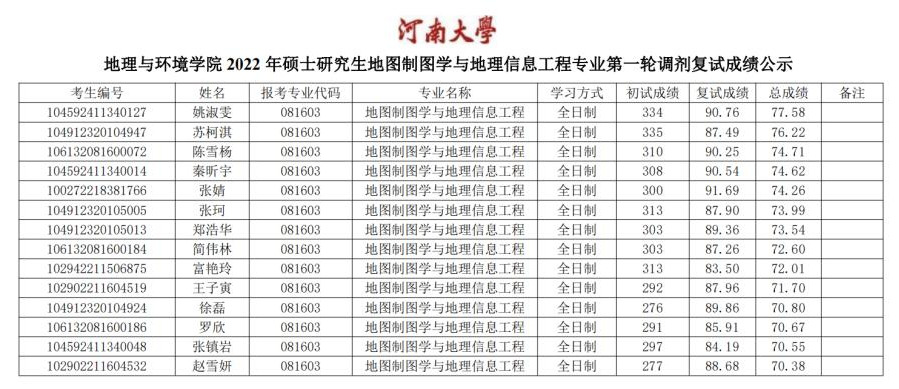 球探足球比分网 2022年硕士研究生第一轮调剂复试成绩公示