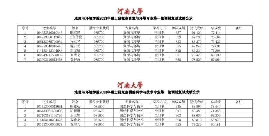球探足球比分网 2023年硕士研究生第一轮调剂复试成绩公示