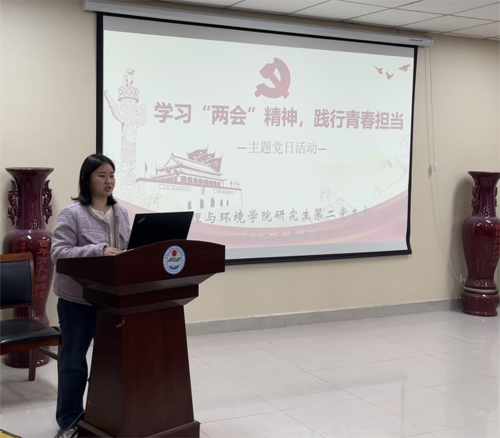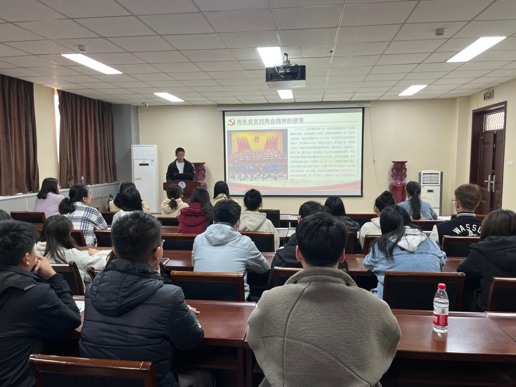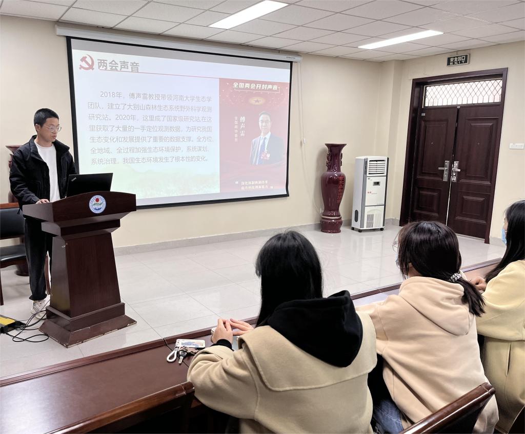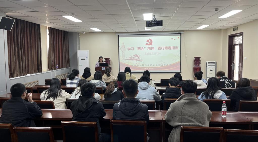 二楼报告厅开展“学习‘两会’精神,践行青春担当”主题党日活动,会议由支部书记陆蓉主持。